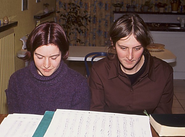Nog efkes piano spelen voor 't aftellen van 't nieuwe jaar... Amai, we zagen der nog jong uit! En mijn haar! 't Is nu toch ook wel stukken beter, nie? :-)