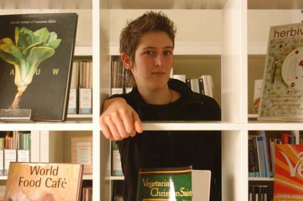 Els en één van haar habitats: de bibliotheek bij EVA